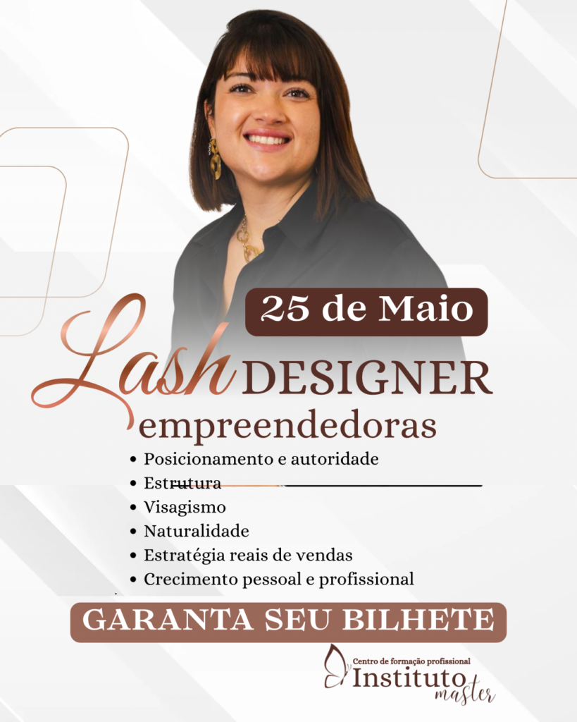 Formação intensiva focada em técnicas de pestanas, aperfeiçoamento profissional e valorização do serviço de lash designer.